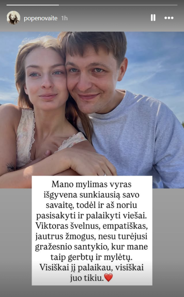 Instagrame ji pasidalijo nuotrauka su Viktoru ir pridėjo žinutę. Įrašu ji sutiko pasidalinti su naujienų portalo Lrytas skaitytojais.