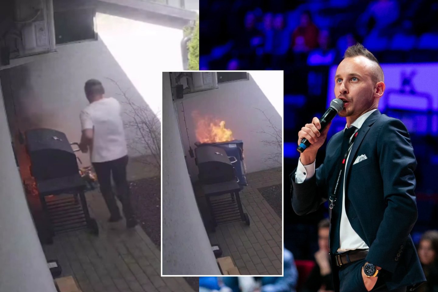 Paviešintame vaizdo įraše matyti, kaip kieme, netoli kepsninės, pirmiausia ima kilti dūmai, o netrukus įsiplieskia ir atvira liepsna.