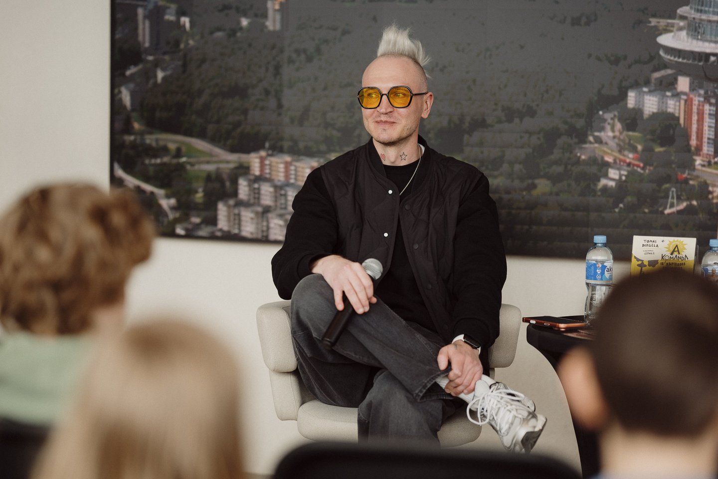 Rašymo savaitę vaikai galėjo rašytoją aplankyti, pakalbinti ir paprašyti autografo. „Rašymas neįprastose vietose padeda susitelkti, leidžia kūrinį užbaigti vienu ypu“, – sako Tomas ir priduria, kad rašyti gali bet kur, o aplink besisukiojantys ir fotografuojantys žmonės netrukdo. Gal labiau – drebančios kojos, kai pirmą kartą atsisėdi ant bokšto krašto.