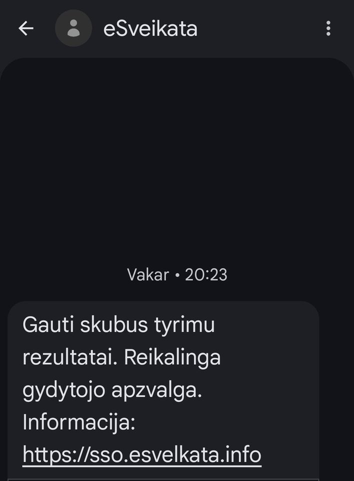 „Gavau žinutę iš E.sveikata, kad atėjo tyrimų atsakymai. Kadangi jų laukiau iš tiesų – paspaudžiau.