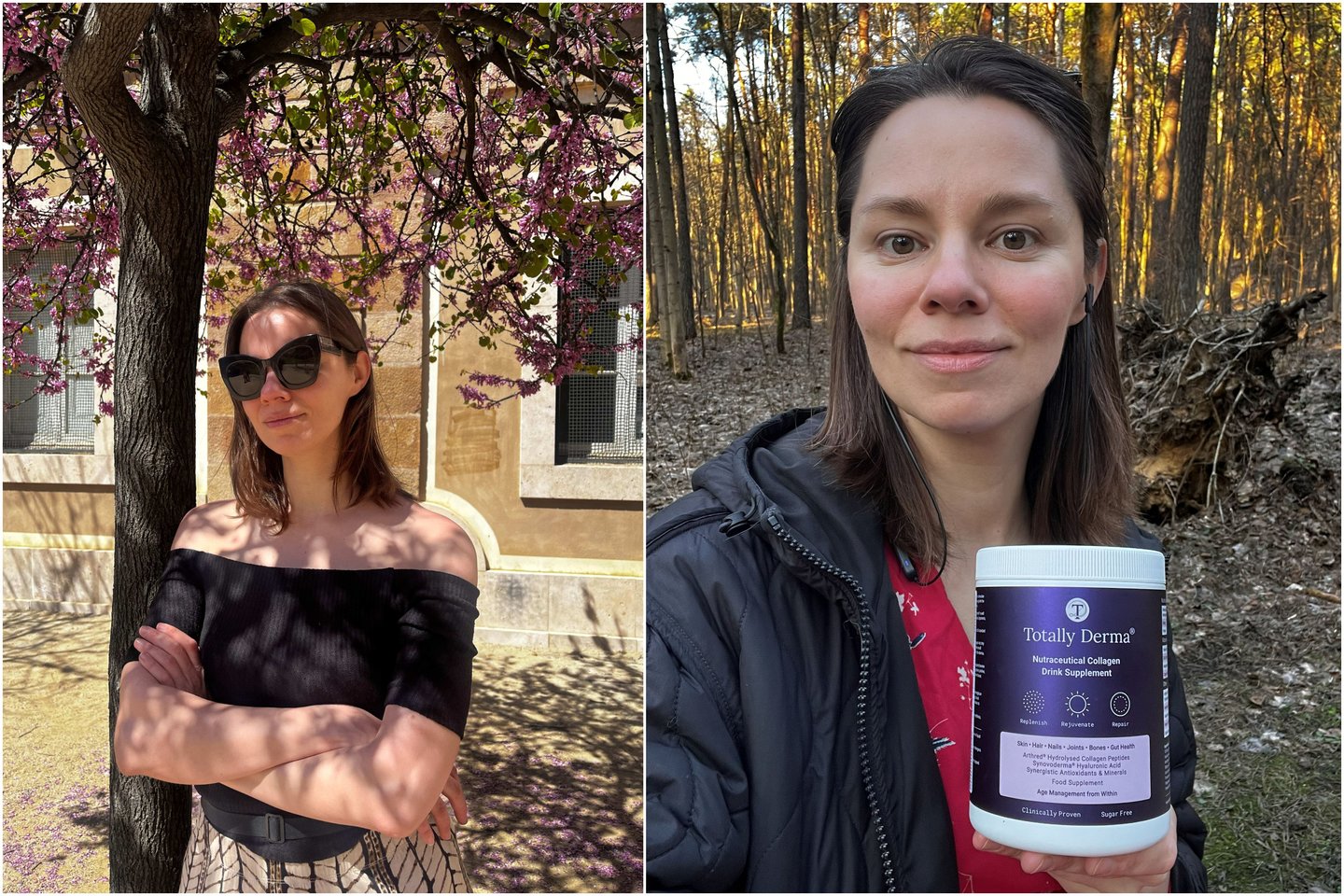 Aktorė iš pradžių pati įsigijo kolageno „Totally Derma“ pakuotę, išbandė, o pamačiusi jo efektą, susisiekė su šį produktą atstovaujančia el. parduotuve cosmozone.lt.