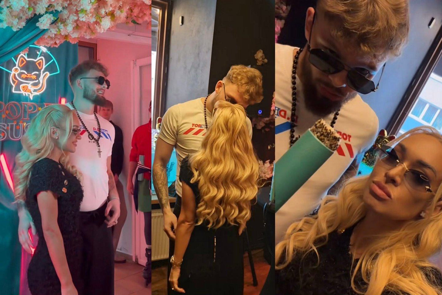 Tarp gausybės svečių dėmesį kaustė neseniai susižadėjusi pora – verslininkė ir grožio specialistė Oksana Pikul (42 m.) bei kovotojas Dominykas Dirkstys (24 m.).